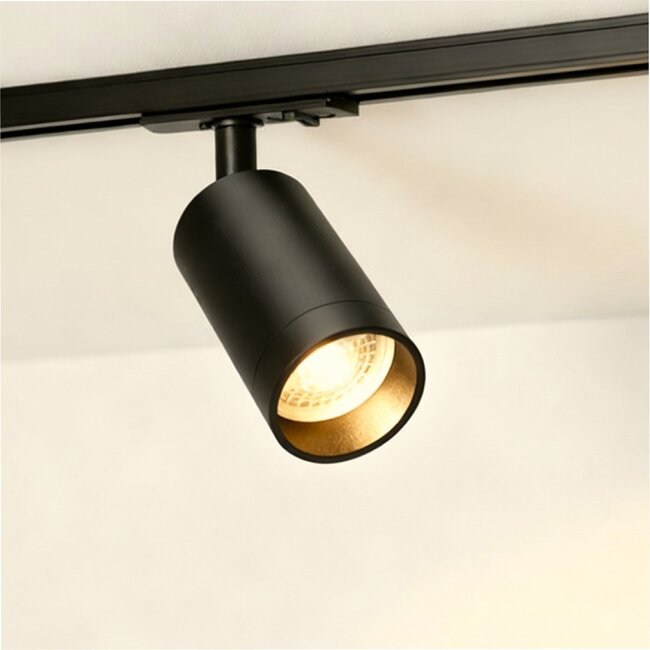 Deze 1-fase zwarte LED railspot combineert strak design met maximale flexibiliteit en is ideaal voor moderne interieurs. Het armatuur is gemaakt van hoogwaardig aluminium en biedt een duurzame, betrouwbare afwerking. Dankzij de GU10 fitting kies je zelf eenvoudig de gewenste LED spot en lichtkleur, zodat je altijd de juiste sfeer creëert. Met zijn compacte formaat (Ø54 x 100 mm) past deze railspot moeiteloos in elke woon- of werkruimte.